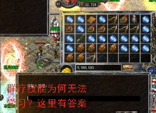 1.等级不足:这是最常见的原因。在绝大多数传奇版本中,学习群疗技能有严格的等级要求,通常需要角色达到35级或更高。请先确认您的角色等级是否达标。